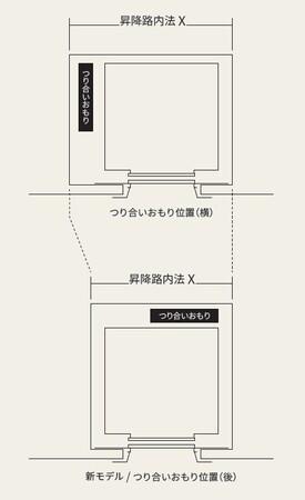 つり合いおもり背面配置による昇降路内法標準寸法(間口方向)の短縮