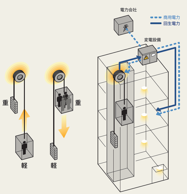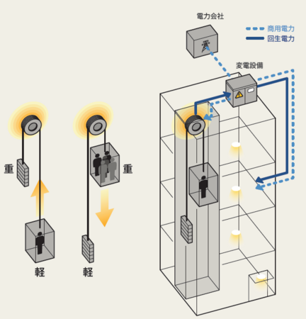 *4 エレベーターの積載荷重が軽い状態での上昇運転時や、積載荷重が重い状態での下降運転時に発生する電力。