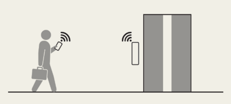スマートフォンをBluetoothで入退室管理システムと通信させることで、非接触でのエレベーター呼び出しや、エントランスの自動解除が可能です*3。(有償付加仕様)