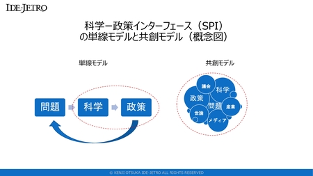 ・SPIの視点では、「科学的な真実を政策に伝える」ことで科学的エビデンスに基づく政策が実現する「単線モデル」だけでなく、MRC以外の3アクター(SC、AMPERES、清華大学)は、ウェブサイトやメディアを使用することで「共創モデル」も利用していると分析される