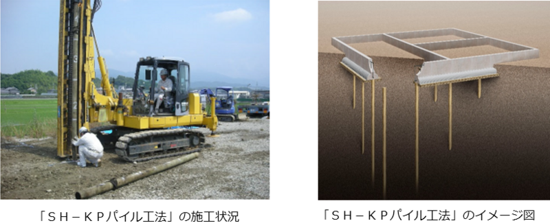 「SH-KPパイル工法」は、間伐材等の国産木材を有効活用することで、国産材の利用拡大による林業活性化や、CO₂削減などによる環境負荷低減を実現しながら、⾼品質な防腐・防蟻処理により⾼耐久性を確保する地盤補強⼯法である「環境パイル⼯法」*²の地盤の適用範囲を拡大した工法で、一般財団法人日本建築総合試験所にて2025年7月24日に性能証明を取得しました。