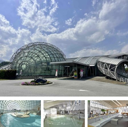 「ゆ~ぷるにらさき 韮崎市健康ふれあいセンター」は、 ガラスドームが特徴的な日帰り温泉施設です。