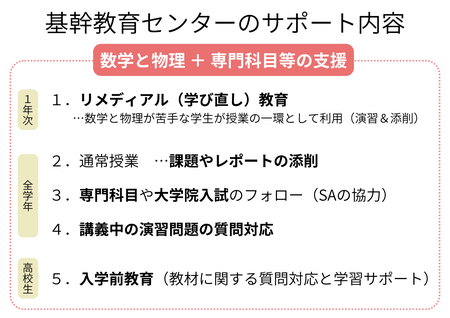 ◆ 久留米工業大学の基幹教育センターはこの他にも手厚く面倒見が良いサポートで学生を支援しています
