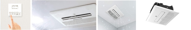 リモコンの「キレイ運転」ボタン一つで、水による浴室の予備洗いの後、壁や床面、水が溜まりやすい箇所(排水口など)へのオゾン水散布を行います。散布が終わると洗い流し、そのまま換気・乾燥へと移り、湿度センサーで乾燥完了を検知後、自動で運転が停止します。