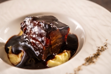 牛バラ肉を長時間丁寧に煮込むことで口の中でほろほろとほどける食感に仕上げました。赤ワインの風味を程よく感じる濃厚な味わい。