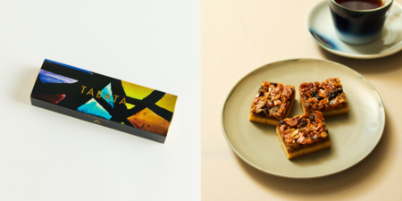 ヌガー(キャラメル状の生地)には、数週間かけて漬け込んだ生姜や実山椒、柚子胡椒などのスパイスを加え、深みと奥行きのある味わいに仕上げました。レーズンやはちみつ、バター、ナッツの華やかな味わいと、山椒や柚子胡椒の爽やかな香りが相性抜群で、程よい甘味をピリッと引き締める唐辛子がアクセント。ザクザクとした食感やスパイスの風味を引き出すために、材料はあえて不揃いになるようパティシエが手作業で丁寧にカットしています。