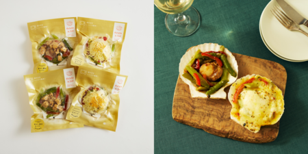 貝殻をお皿に見立て、肉厚で旨味たっぷりのホタテを「ベシャメル&チーズ」と「焦がし醤油&バター」の2種の味わいでお楽しみいただけるセットです。電子レンジ500wで約3分半温めるだけで本格的な味わいに。ギフトやパーティー、ご自宅でのちょっとしたご褒美におすすめです。