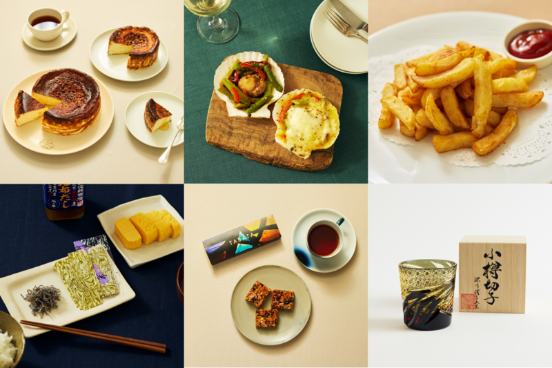 今回、北海道特集第2弾として新たに登場するのは、函館元町のフレンチレストランが手掛けるパティスリーの、グルテンフリーの濃厚チーズケーキ「ガトーフロマージュ」や、スパイスが香る大人の「スパイスフロランタン TABATA」など、北海道産の素材を使用したスイーツ。また、士幌町で生まれたじゃがいも「北海黄金」のフワフワとした食感と自然な甘味を引き出した「北海黄金のフライドポテト」、小樽産ホタテを使用し電子レンジで温めるだけで本格的な味わいが楽しめる「ホタテdeポン 2種の味詰合せ」、北海道の海の恵みを堪能できる「昆布三昧セット」などがラインアップいたします。さらに、小樽切子の伝統を継承しながら大胆なカッティングで新たな魅力を表現する「小樽切子 雅 オールド 黒琥珀」など、計8商品を販売いたします。