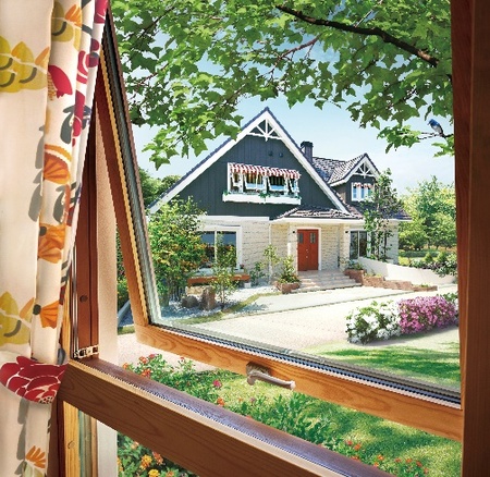 2) 夏場の平均気温の上昇と長期化によって冷房の使用期間が拡大するなか、当社が標準採用する木製サッシ3層ガラス窓はLow-Eガラス、アルゴンガス仕様となっており、優れた日射取得率(η値0.49%)を実現。更に外付けのオリジナルオーニンングにより、冷房期の日射熱を抑制。