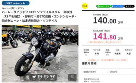 地域、排気量、車種、価格帯など豊富な条件での検索に対応しており、