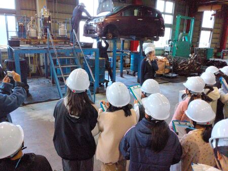 酒田市立浜田小学校5年生が参加!解体事業者の自動車リサイクルへの取り組みを学ぶ見学会を開催