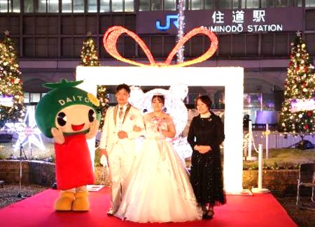 「スマイルウェディング」は、大東市スマイルミネーションを象徴するイベントです。市民に祝福されながら結婚式