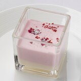 さくらんぼのコンフィチュールになめらかなチョコレートのクリームを重ね、上にはカカオパルプ※のパウダーを練りこんだ酸味のあるチョコレートと甘くビターな粒状のチョコレート2種類を振りかけました。金箔を飾ったアマレナチェリー※とバジルをトッピングしており、バジルによる味わいと香りの変化を楽しめるだけでなく、まるで土からバジルが生えているような見た目にも市川の遊び心が感じられるグラスデザートです。