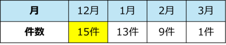 表1 月別の事故発生件数