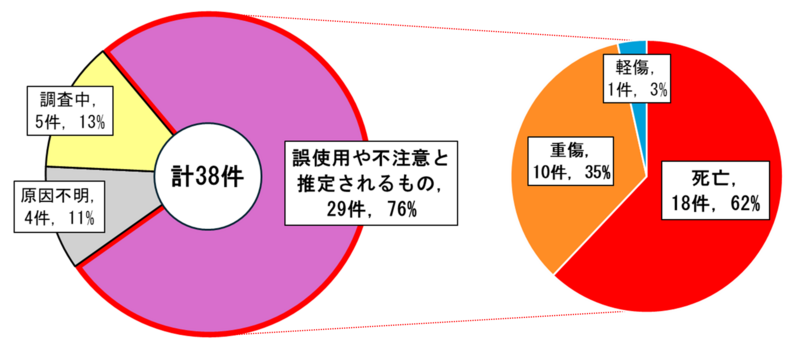 図2 原因別の事故発生件数 及び 「誤使用や不注意と推定されるもの」の被害状況