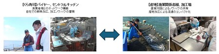 鮮魚の処理や熟成加工における最適な品質管理を、チルド・冷凍を問わず、自社のセントラルキッチンで研究、実践し、そのノウハウや各産地で得た知識を各産地加工場へフィードバック。産地加工により物流のコンパクト化を図り、全国チェーン店でありながら、輸送コストの低減や店舗での提供を容易に。