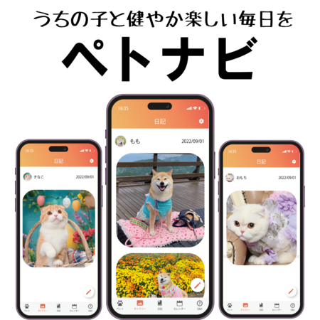 504名の獣医師と飼い主の声から誕生した、犬猫健康エンタメアプリ。お世話にまつわる記録や思い出を綴り、情報を一元化できます。『うちの子と健やか楽しい毎日を』をテーマに、ペトナビアプリ3大機能の「健康」「思い出」「交流」を、アプリやイベントを通じて全国の犬猫と飼い主に提供します。