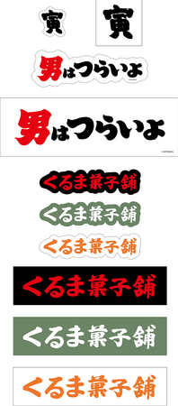 精を出す寅さんをデザインしたプレミアムホルダー、「寅」・「作品ロゴ」・「くるまやロゴ」のステッカー