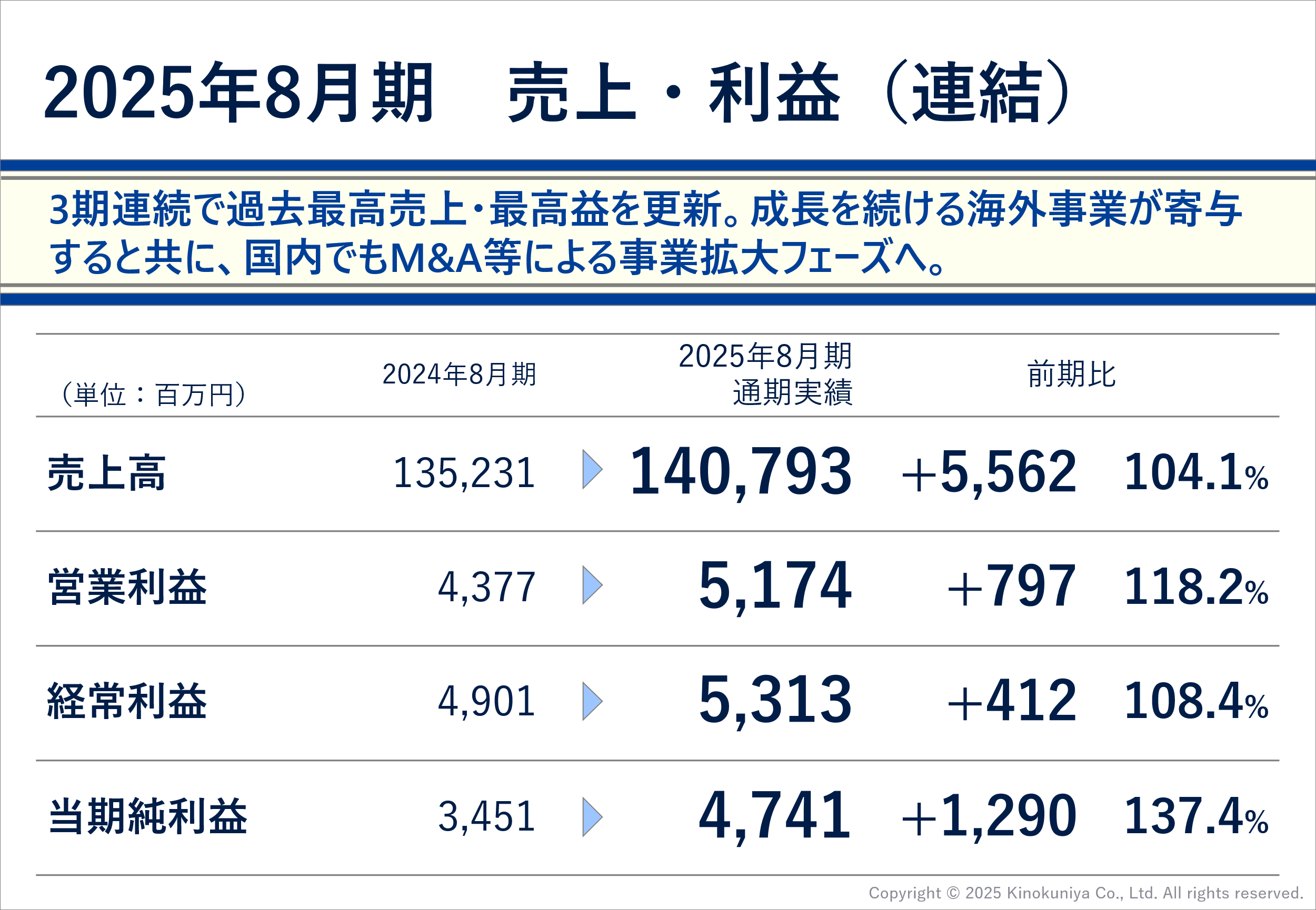 紀伊國屋書店 2025年8月期 通期決算発表 【連結】3期連続で過去最高売上・最高益を更新