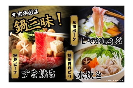 〇【福袋】冬の鍋三昧セット (北播磨産牛・播州百日どり・三田ポーク 計1.9kg) <1月出荷>