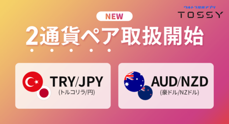 株式会社DMM.com証券(本社:東京都中央区、代表取締役 谷川龍二)は、2025年12月1日(月)より、【ウルトラ投資アプリ TOSSY】の取引通貨ペアに「TRY/JPY(トルコリラ/円)」「AUD/NZD(豪ドル/NZドル)」を追加いたしましたのでお知らせいたします。