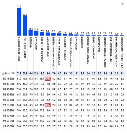 で、「SNSの投稿/広告」が他の年代層に比べ顕著に高くなった。【図表3】