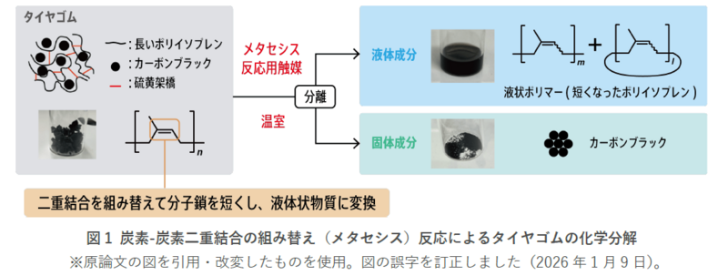 タイヤゴムを室温で液状ポリマーに分解するケミカルリサイクル技術を開発