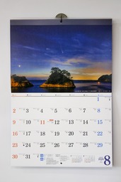 また日付のタマも大きく、見やすく読みやすく、メモ書きしやすい仕様になっています。タマには六曜、祝日、日没時刻・干潮時刻、町内イベント、先月翌月の記載もあります。カレンダーは発色の良さにこだわった印刷で、色鮮やかな写真をふんだんに使用し、高いクオリティを実現。角の折れ曲がりを防ぐ付属品も付いています。