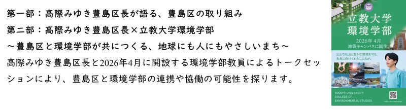 開会式および豊島区長×環境学部 特別講演(12:40~14:00、8号館1階8101教室)