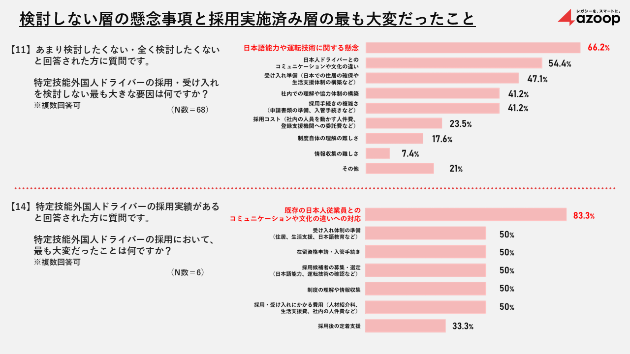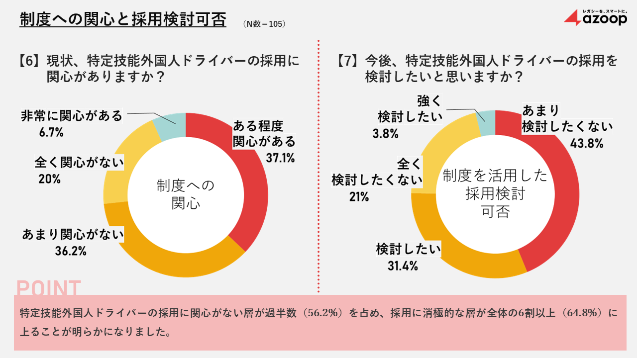 株式会社 Azoop、運送従事者の実態調査を実施。「特定技能外国人ドライバー採用」は6割超が採用に消極的。