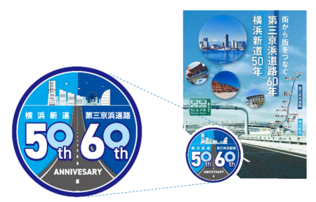 各路線の周年である「50th」「60th」をシンボルマーク化し、横浜の街並みに向かっていくイラストを描くことで、『街から街をつなぐ道』をロゴで表現しています。ポスターデザインでは、背景にある港北JCTを中心に、横浜を代表するスポットを散りばめています。