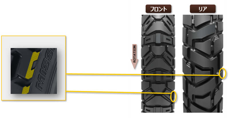 フロント・リアに専用ブレンドしたフルカーボン配合を採用。ロングツーリングにも対応できるライフ性能と、オフロードでのトラクション性能を強化しました。