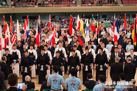 2015年東京にて開催された第16回世界剣道選手権大会閉会式の模様