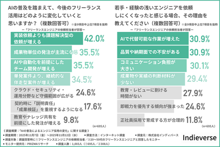 そこで今回、株式会社インディバースは、①フリーランスエンジニアの依頼担当者/②20〜50代のフリーランスエンジニアを対象に、「AIの普及によるエンジニア採用の変化」に関する調査を実施しました。