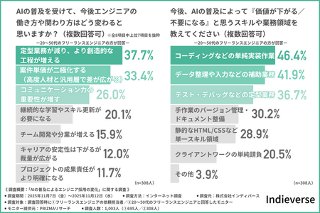 株式会社インディバース(所在地:東京都武蔵野市、代表取締役:河合 大)は、「AIの普及によるエンジニア採用の変化」に関する調査を実施しました。