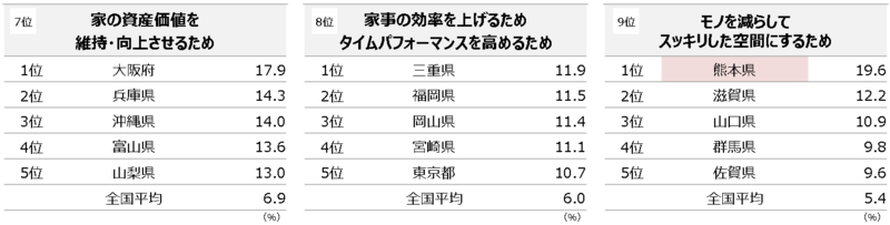 全国ランキング全体を見ると、家に対する「距離感」と「役割の捉え方」の違いがはっきり出ています。