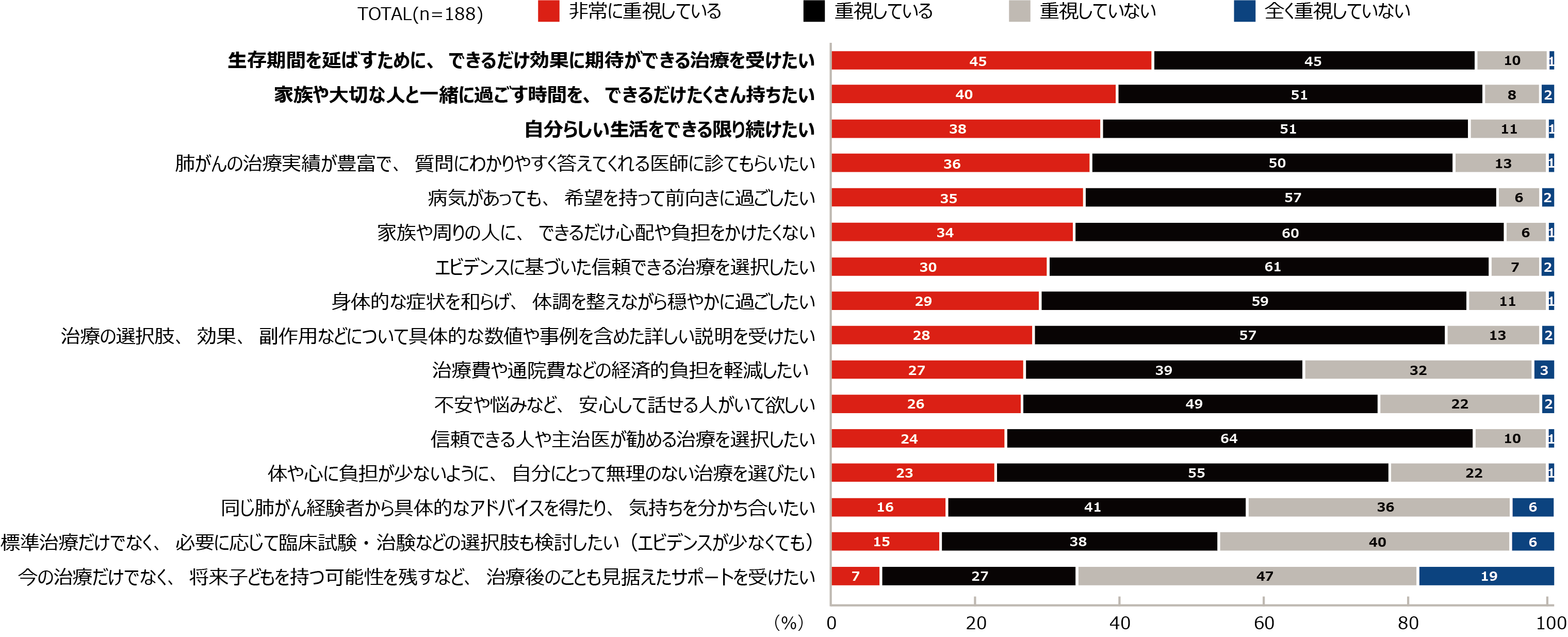 肺がん患者さんは「生存期間を延ばすために、できるだけ効果に期待ができる治療」を最も重視、 重視以上の割合は90%