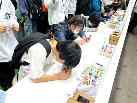 JARC ブースでは自動車のリサイクル制度を学べるクイズラリーや、フロントガラスの製造過程で生じる廃材から作られた絵の具を使用したキーホルダーづくり(ディンプルアート)を実施し、クイズと体験を通じて、ごみの削減と資源の有効利用を目指した自動車リサイクル制度を紹介しました。