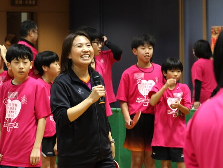 参加選手とのチャレンジマッチや石川さんと参加者全員でボールを繋ぐ「絆ラリー」も実施し、参加者は緊張の表情を見せながらも笑顔で卓球を楽しみました。
