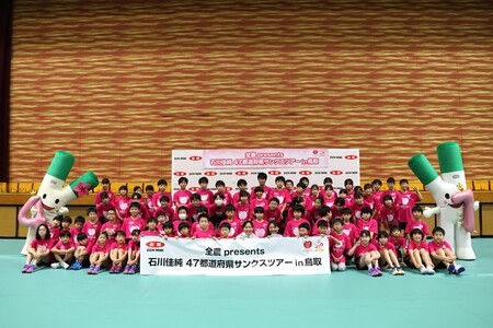 「石川佳純47都道府県サンクスツアー」(企画:IMG)は、石川さんが全国各地の方々との交流を通じて、卓球の魅力やスポーツの楽しさを伝えることを目的として企画されたもので、令和4年4月にスタートしました。今回で記念すべき47回目の開催となりました。全農主催は先月開催された青森教室に続き延べ13回となります。世界の舞台で戦ってきた石川さんがご自身の経験をもとに、実技指導やトークショーを通して健康で強い心と体を持つ選手になるために重要な「心技体」について鳥取県の子どもたちに伝えました。