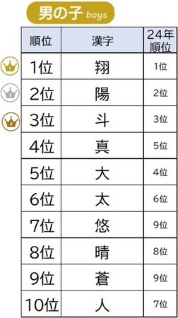 ※「2025年生まれ赤ちゃんの命名・ 名前ランキング」
