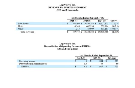 株式会社LogProstyle(NYSE American: LGPS、本社:東京都港区、代表取締役 兼 執行役員社長:野澤泰之、以下「当社」)は本日、2026年3月期上期(2025年4月1日~2025年9月30日)における決算を発表いたしました。