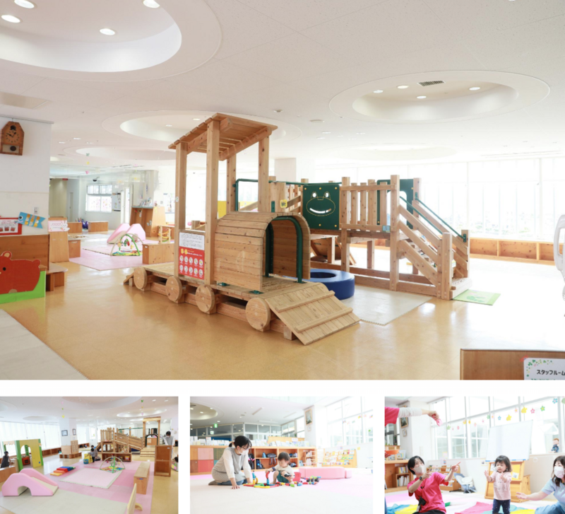 韮崎市子育て支援センター にら★ちびは、親子が自由にすごせる「屋内公園」というコンセプトのもと、山梨県産の木材を使った大型遊具や木のおもちゃなど木のぬくもりと、香りが広がる子育て支援センターです。