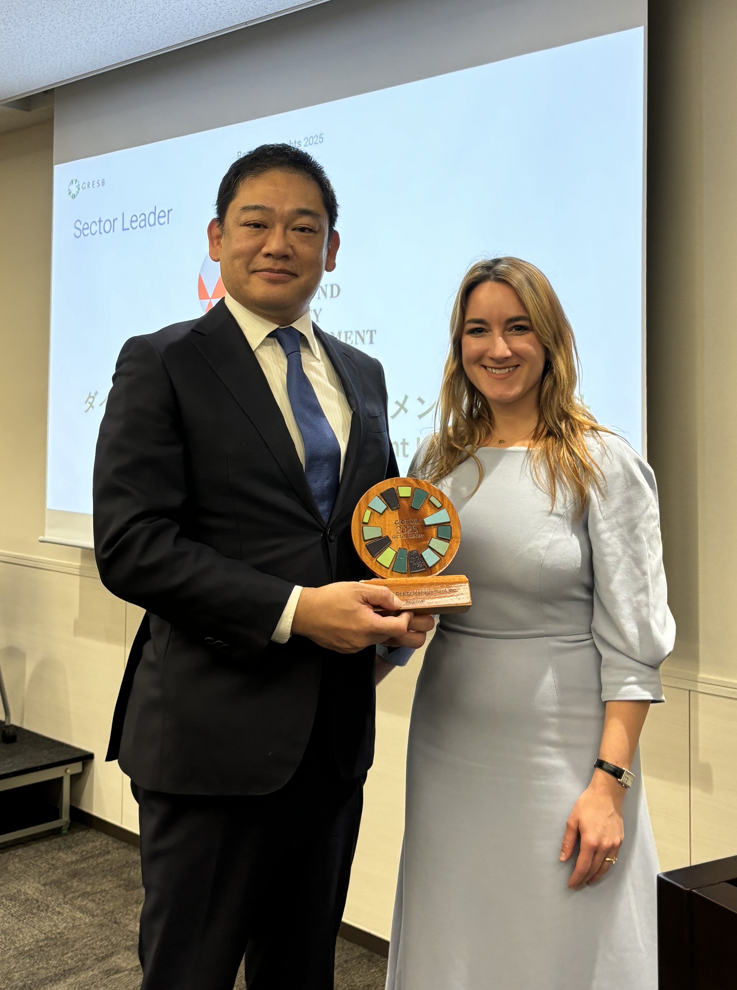 2025年GRESBのグローバル・APACの結果発表・セクターリーダー表彰式においては、GRESBによる2025年結果概要に関するプレゼンテーションに引続き表彰式が行われ、当社代表取締役社長萬野 雅史がDPRを代表し、アジア地域・非上場・総合型セクターのセクターリーダーの表彰及び記念盾の贈呈を受けました。