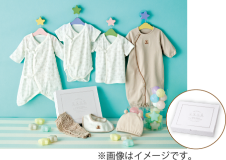 生まれてすぐの赤ちゃんが身に着けるアイテムを、すべて日本製で揃えたセットです。