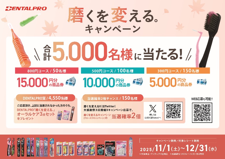 11月1日(土)~12月31日(水)の期間で、歯間ブラシを含むデンタルプロ全商品が対象となる、毎年恒例の「磨くを変える。キャンペーン」を開催しています。