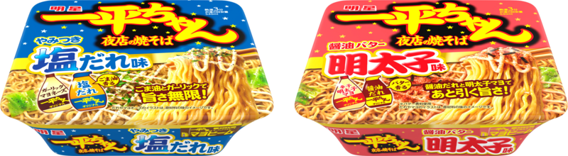 「明星 一平ちゃん夜店の焼そば 関西風お好み焼ソース味」「(同) やみつき塩だれ味」「(同) 醤油バター明太子味」を2026年1月上旬より順次リニューアル発売