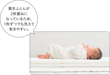 お洗たくの手間を軽減する防水キルトパッド入り。