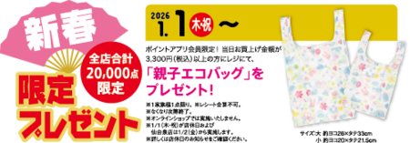 当日お買上げ金額が3,300円(税込)以上の方にレジにて、「親子エコバッグ」をプレゼントします!