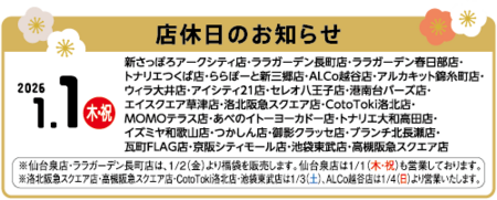 ※年始の営業につきまして、詳しくは各店舗ホームページをご確認ください。